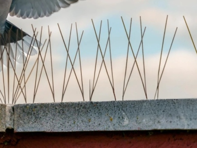 For ledges, beams, and window sills, bird spiking is a highly effective deterrent. These spikes prevent pigeons from landing and nesting without causing them harm.